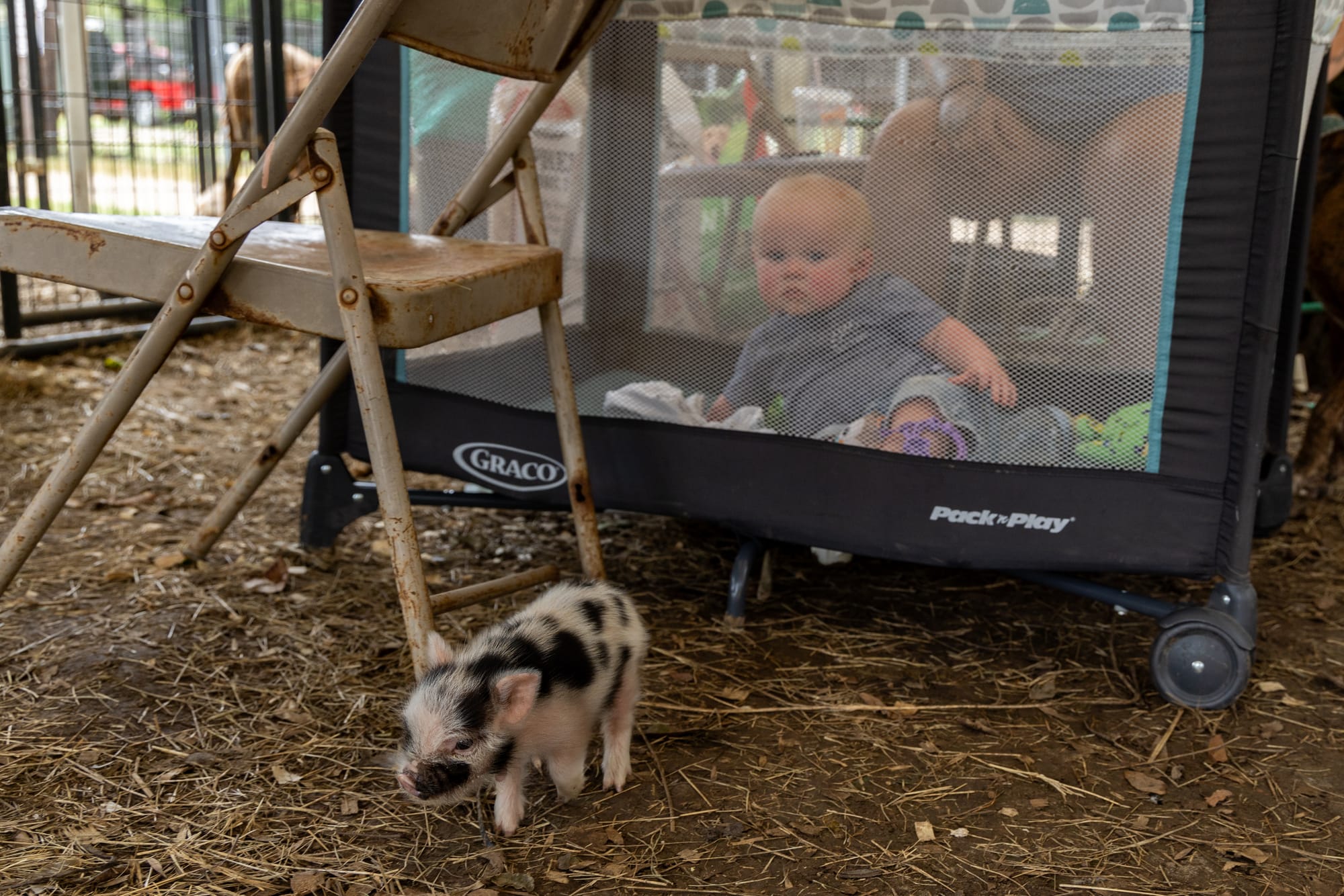 After a handful of conversations with vendors, including a woman selling 'dobieherds' who crops their ears for "intimidation" and a man selling the feathered remains of a beloved peacock, I stopped to take one last photo. A human baby played alone inside a Pack-N-play set up in between cages of various farm animals, as a weeks old piglet roamed freely around the tent. I quietly pointed out the ironic composition to Paula and as we approached the parking lot, she stopped. “I’m looking at all of this differently now,” she said. “I never thought about it before. I appreciate you showing me.” It's these very moments that reaffirm my belief that we (humans) can find ways to connect, despite the assumed odds.
